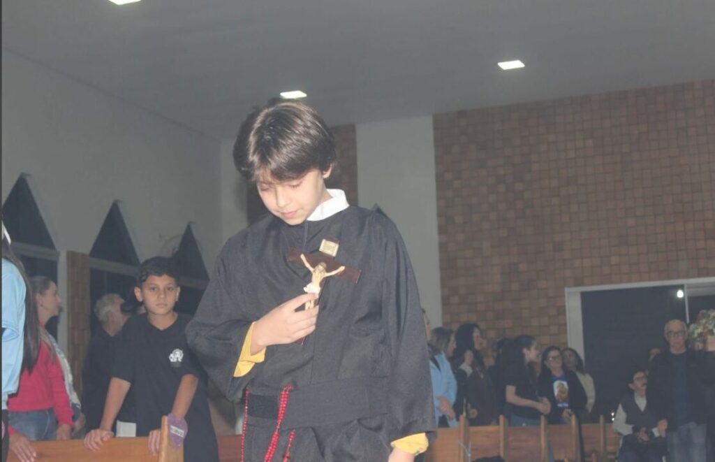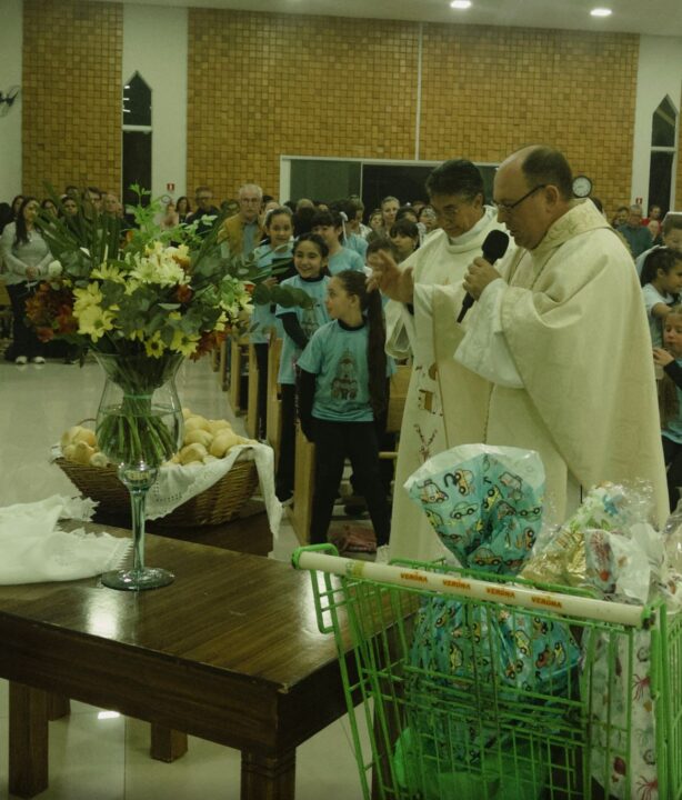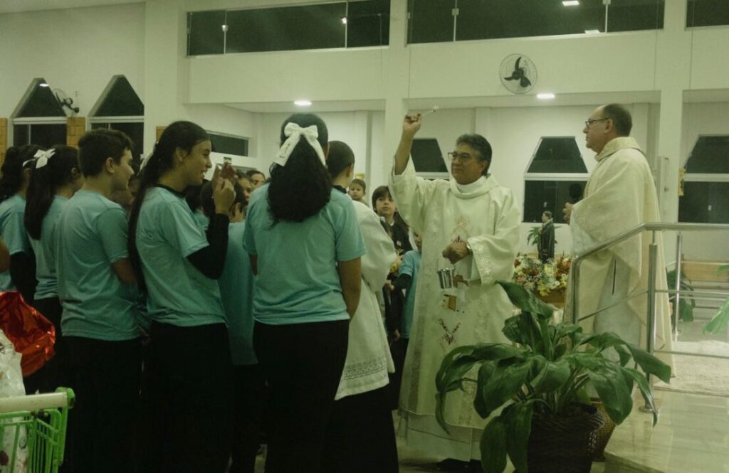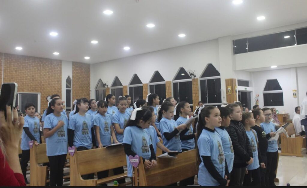 A Santa Missa foi presidida pelo Padre Roberto, com a presença do Diácono Luiz José, e contou com a animação do Coral Paroquial das Crianças, que tornou a noite ainda mais especial.