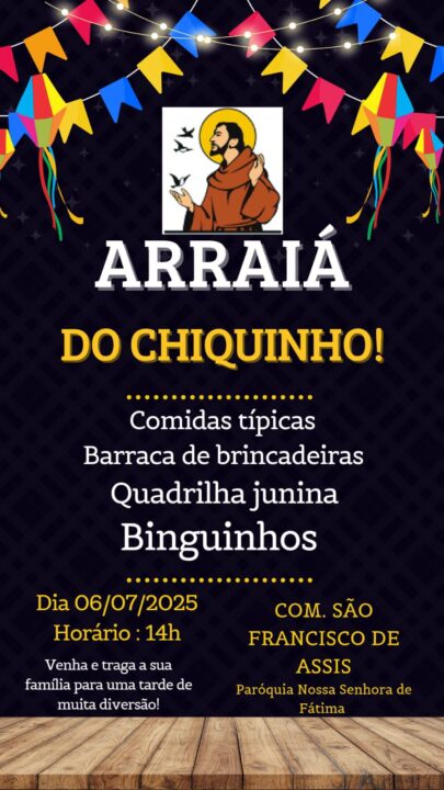 Queridos irmãos e irmãs, Venham celebrar conosco no nosso Arraiá! Uma tarde de muita alegria, fé e confraternização espera por vocês! Não percam! Comunidade São...