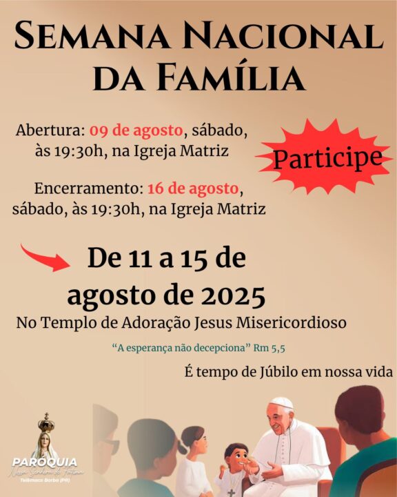 FAMÍLIA, FONTE DE VOCAÇÕES. 📅🏠🙏🎉 CONVITE ESPECIAL 🎉🙏🏠📅 Querida comunidade de Nossa Senhora de Fátima, 📆 Vocês estão convidados para a emocionante e abençoada Semana...