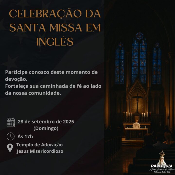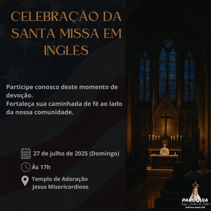 Todos estão convidados a participar da Santa Missa que irá ser celebrada no idioma inglês pelo Pe:Gelson L. Mikuszka, mantendo todo o respeito e tradição...