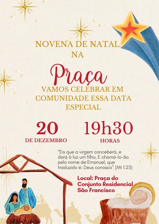 A Comunidade São Francisco de Assis convida todos para o encerramento das Novenas de Natal.Um momento especial de oração e união para vivermos o verdadeiro...