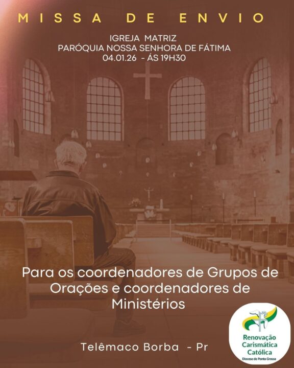 Neste domingo, às 19h30, acontece a Missa de Envio para os coordenadores de Grupo de Oração e coordenadores de Ministérios da Renovação Carismática Católica –...
