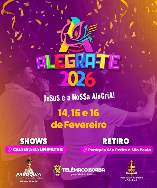 De 22 a 25 de Fevereiro irá acontecer, aqui em nossa cidade, o Carnaval Cristão ALEGRA-TE 2020, uma parceria entre a Prefeitura Municipal de Telêmaco...