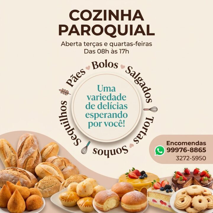 A Cozinha Paroquial retoma oficialmente suas atividades a partir do dia 03 de fevereiro, trazendo novamente sabores que já fazem parte da nossa comunidade. Com...