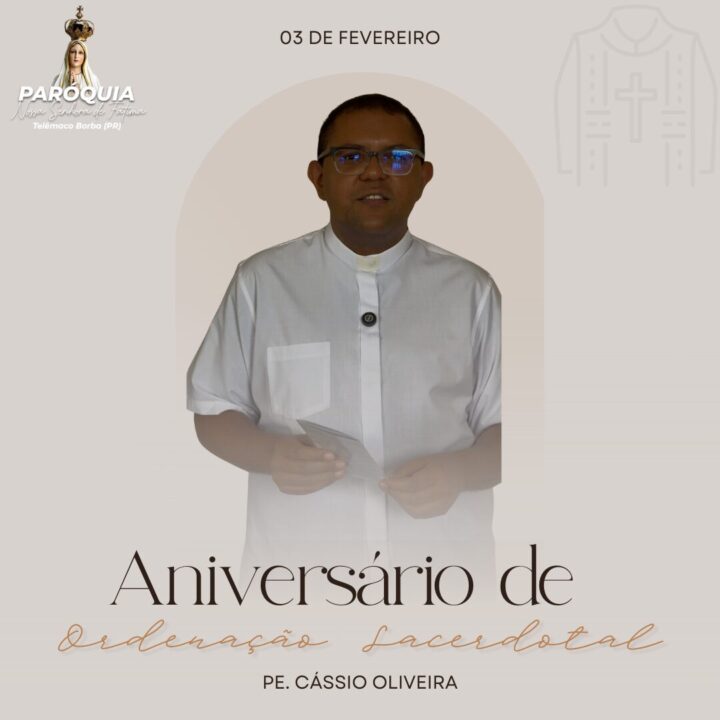 Hoje, 03 de fevereiro, celebramos com alegria os 07 anos de ordenação sacerdotal do Padre Cássio! Que Deus continue iluminando sua caminhada e fortalecendo sua...