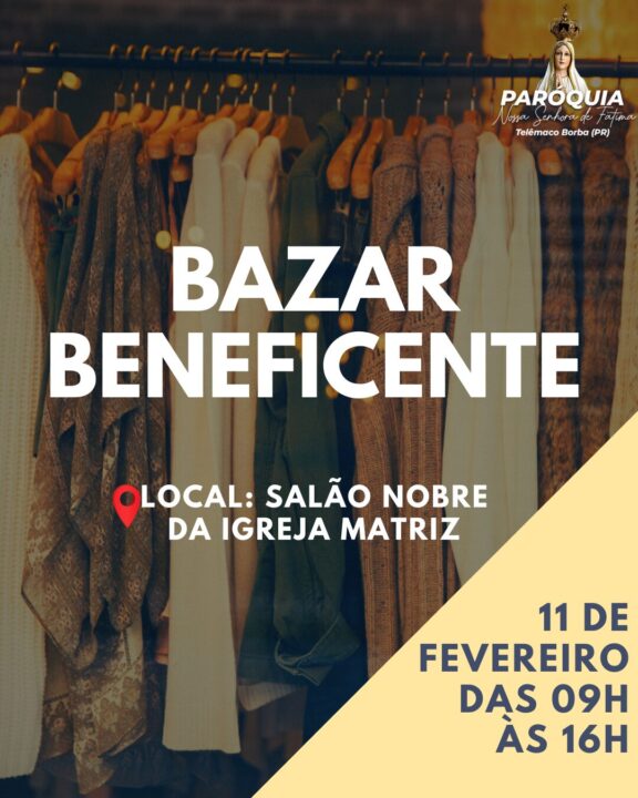 A Paróquia Nossa Senhora de Fátima convida toda a comunidade para o Bazar Beneficente, um momento de solidariedade e colaboração. No dia 11 de fevereiro,...