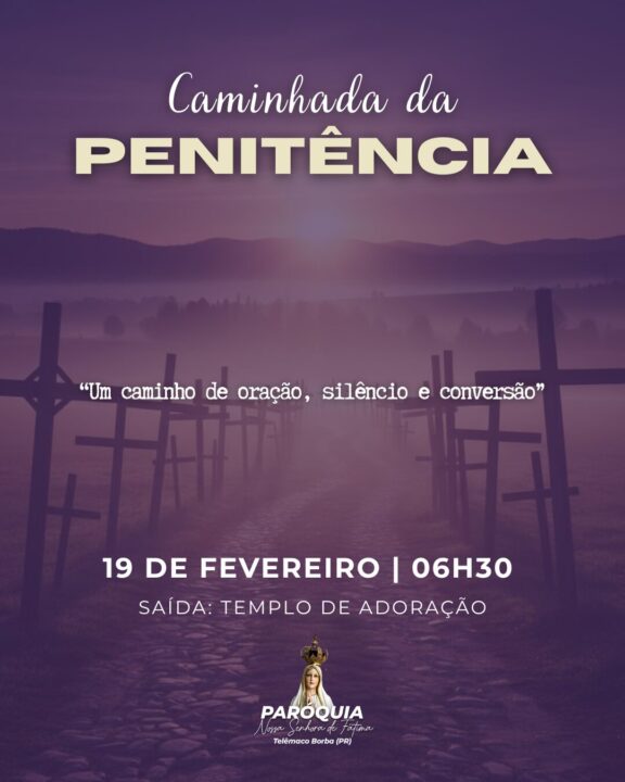 Junte-se a nós na Caminhada da Penitência, que começa na próxima segunda-feira, dia 19 de fevereiro, às 6:30 da manhã, saindo do Templo de Adoração....