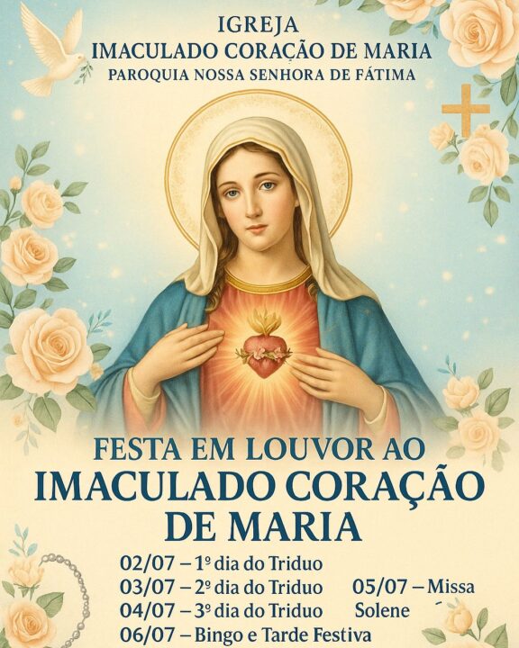 Com grande alegria, a Paróquia convida você e sua família para participar dos momentos especiais em honra ao Imaculado Coração de Maria. 🗓️ Programação:• 02/07 – 1º dia do Tríduo• 03/07 – 2º dia do Tríduo• 04/07 – 3º dia do Tríduo⛪ 05/07 – Missa Solene🎉 06/07 – Bingo e Tarde Festiva🍽️ 07/07 – Almoço […]