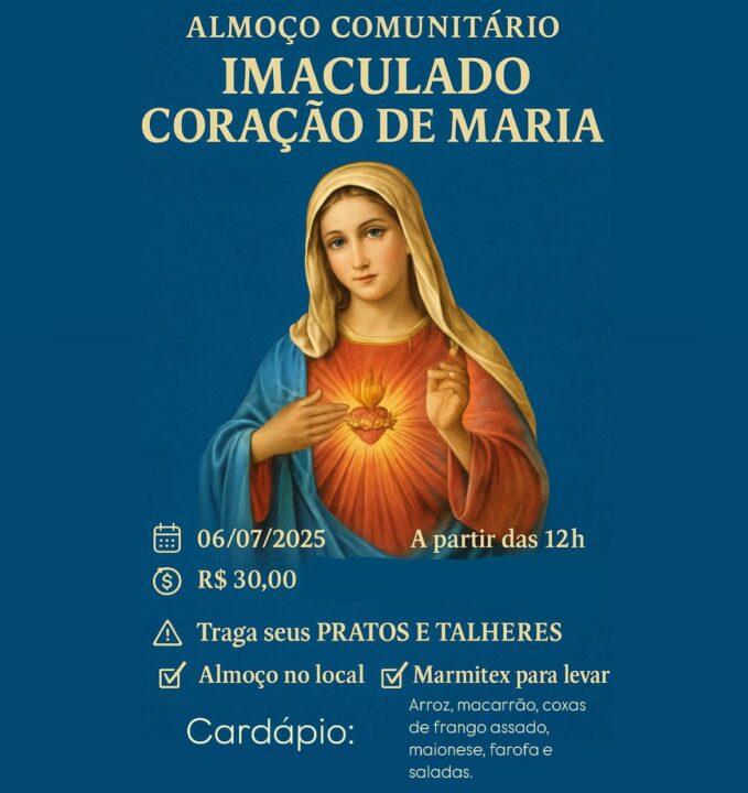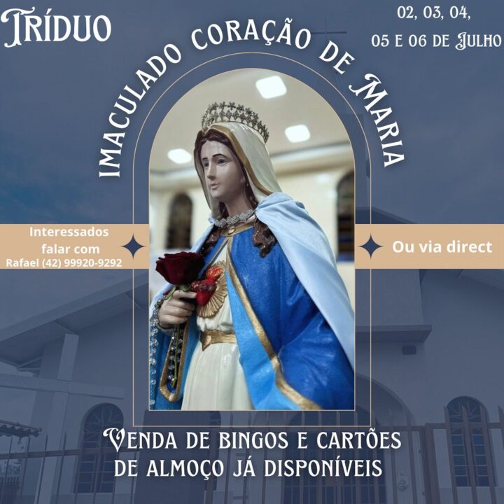 Com grande alegria, a Paróquia convida você e sua família para participar dos momentos especiais em honra ao Imaculado Coração de Maria.