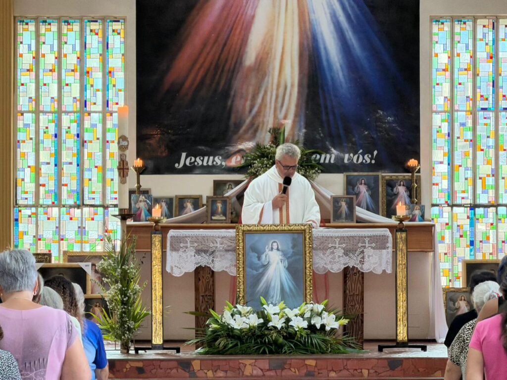 A programação teve início com momentos de louvor e pregação, proporcionando um tempo de oração e participação dos fiéis. Às 15h, foi celebrada a Santa Missa, marcando este dia dedicado à misericórdia de Deus.
