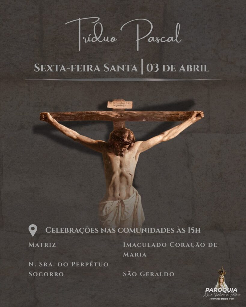 Na Sexta-feira Santa, recordamos a entrega de Jesus na cruz, sinal de amor por toda a humanidade. É um dia de silêncio, oração e contemplação deste mistério central da fé.