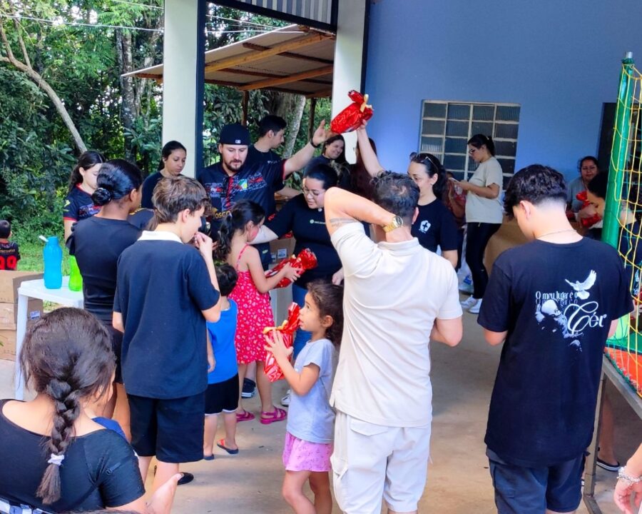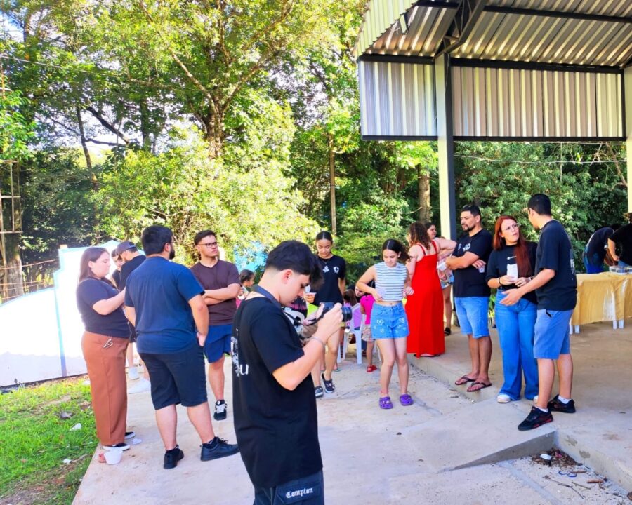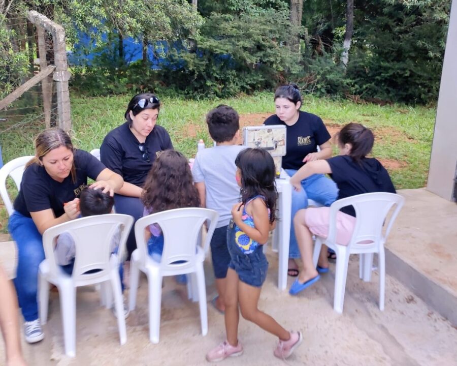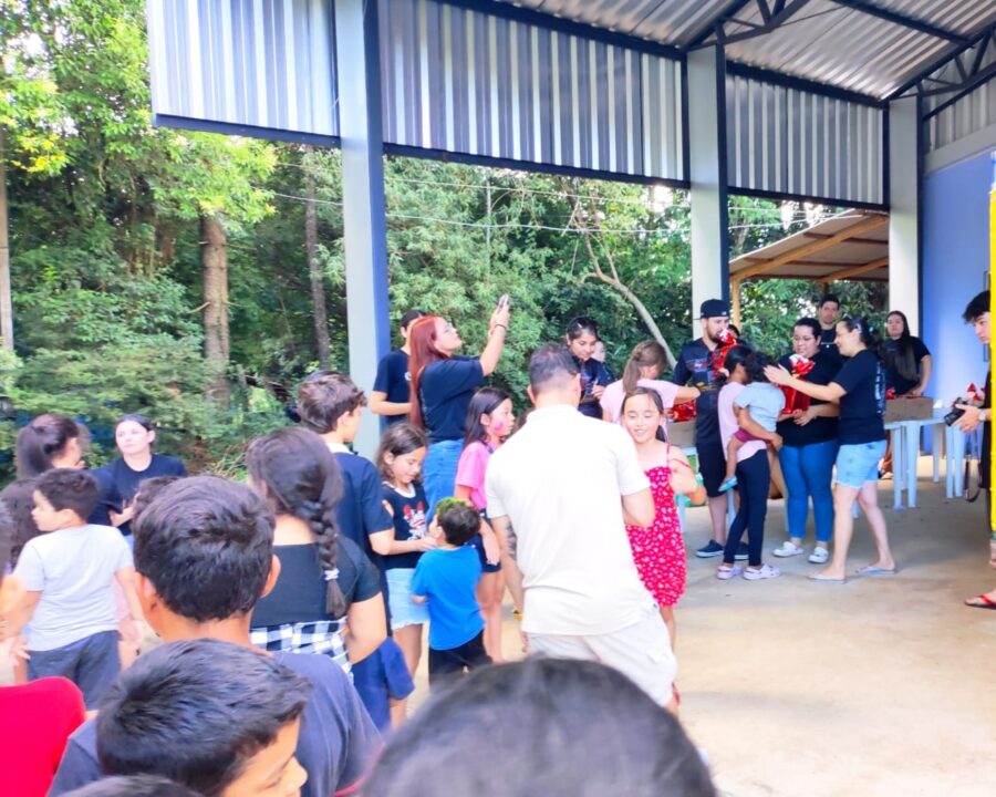 O momento contou com a presença do Padre Gelson, que interagiu com as crianças e realizou a bênção dos lanches. A programação seguiu com brincadeiras, pintura no rosto, lanche e entrega de brindes, promovendo alegria, integração e cuidado com as crianças da comunidade.